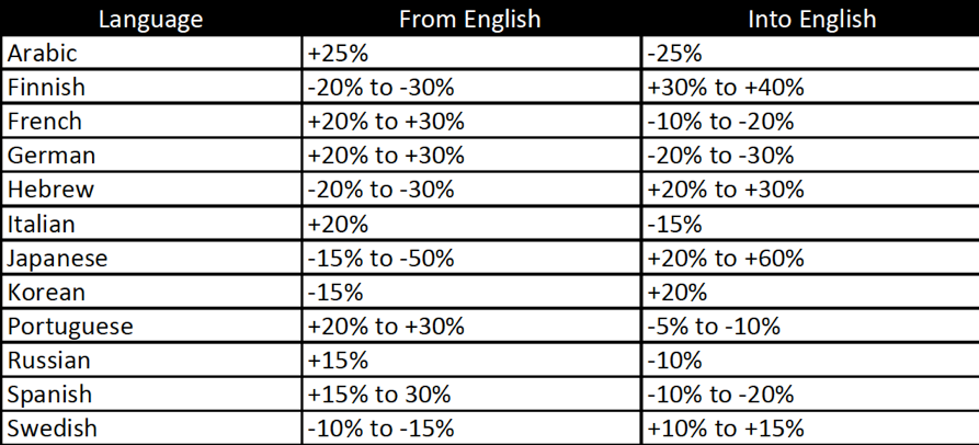 Keep in mind that the amount of text will vary based on what language it is being translated into/from.